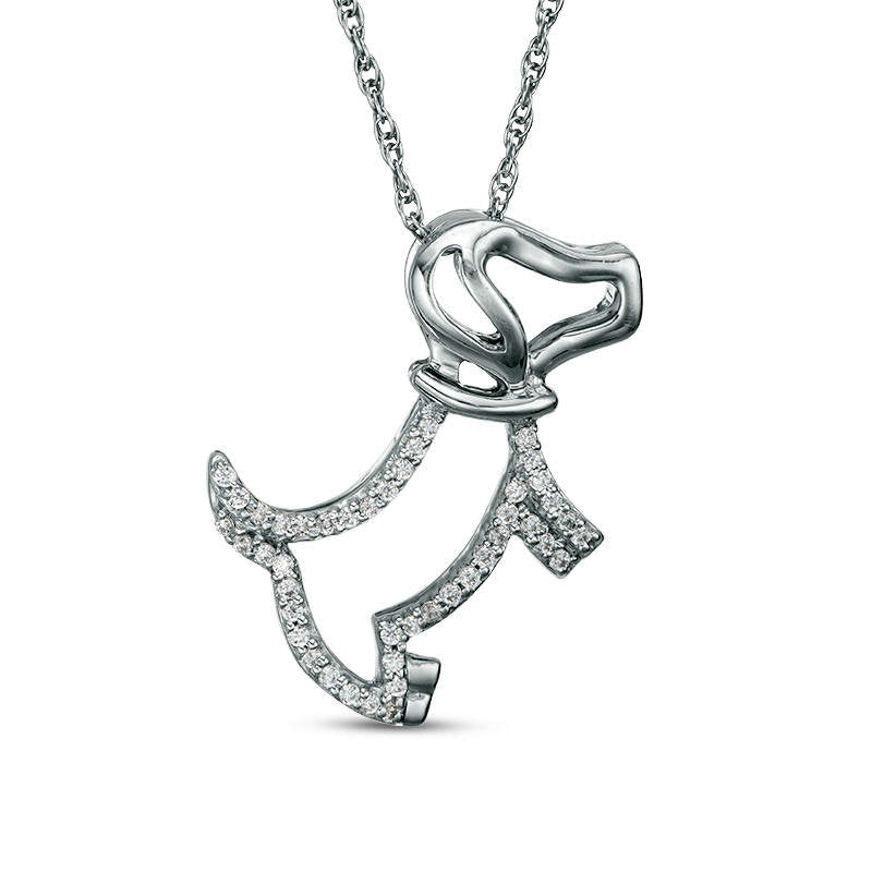 0.13 CT. T.W. Natural Diamond Dog with Collar Pendant in Sterling Silver