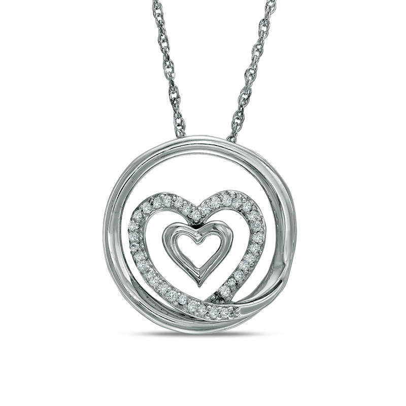 0.13 CT. T.W. Natural Diamond Double Heart Circle Pendant in Sterling Silver