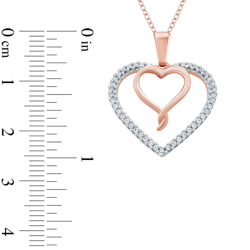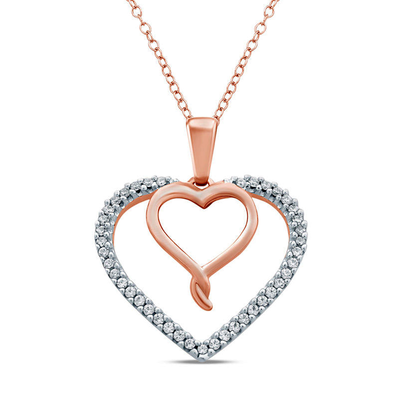 0.13 CT. T.W. Natural Diamond Double Heart Pendant in Sterling Silver and 14K Rose Gold Plate