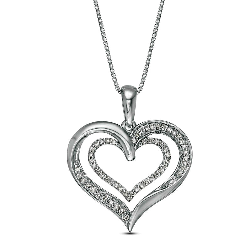 0.13 CT. T.W. Natural Diamond Double Heart Pendant in Sterling Silver