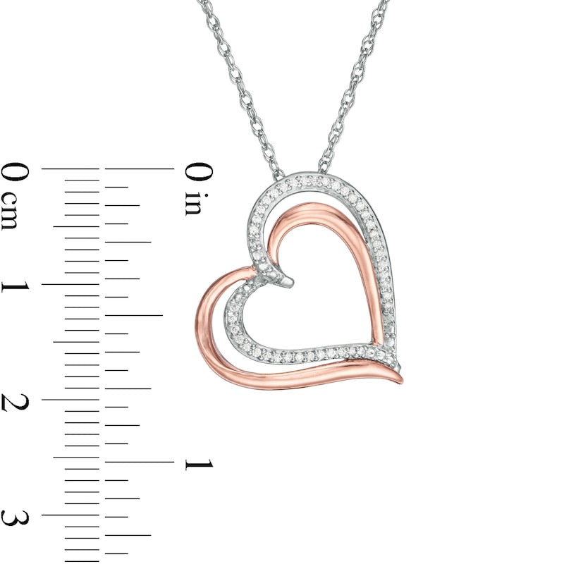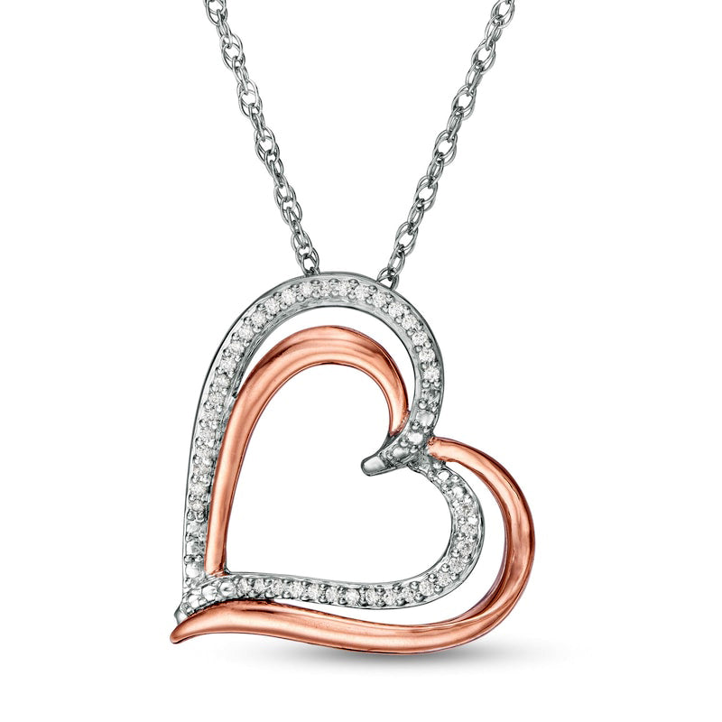 0.13 CT. T.W. Natural Diamond Double Tilted Heart Pendant in Sterling Silver and 10K Rose Gold
