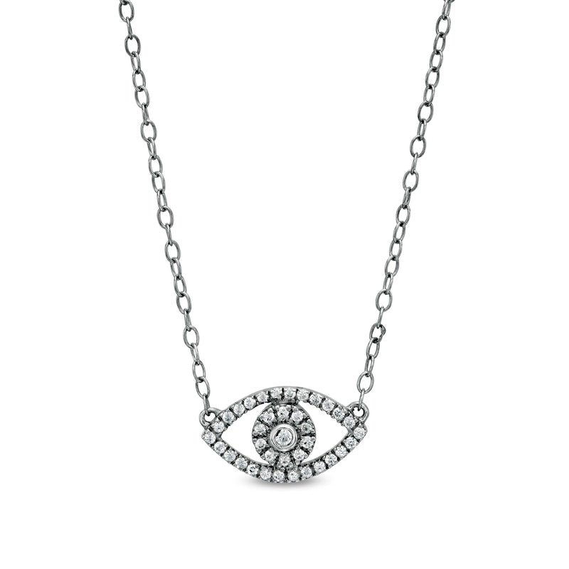 0.13 CT. T.W. Natural Diamond Evil Eye Necklace in 10K White Gold
