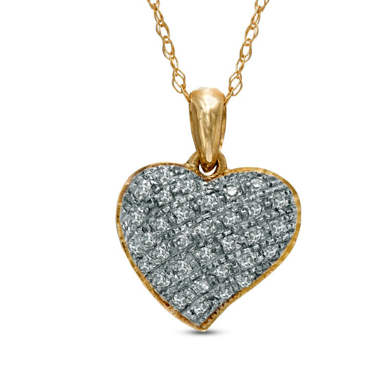 0.13 CT. T.W. Natural Diamond Heart Pendant in 10K Yellow Gold