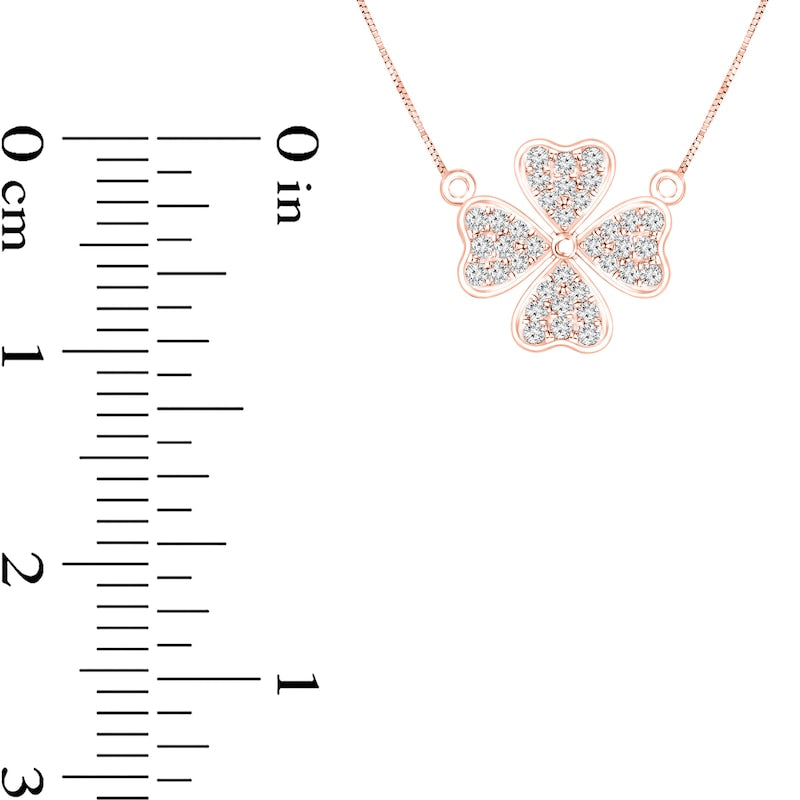 0.13 CT. T.W. Natural Diamond Heart-Shaped Four Leaf Clover Necklace in 10K Rose Gold