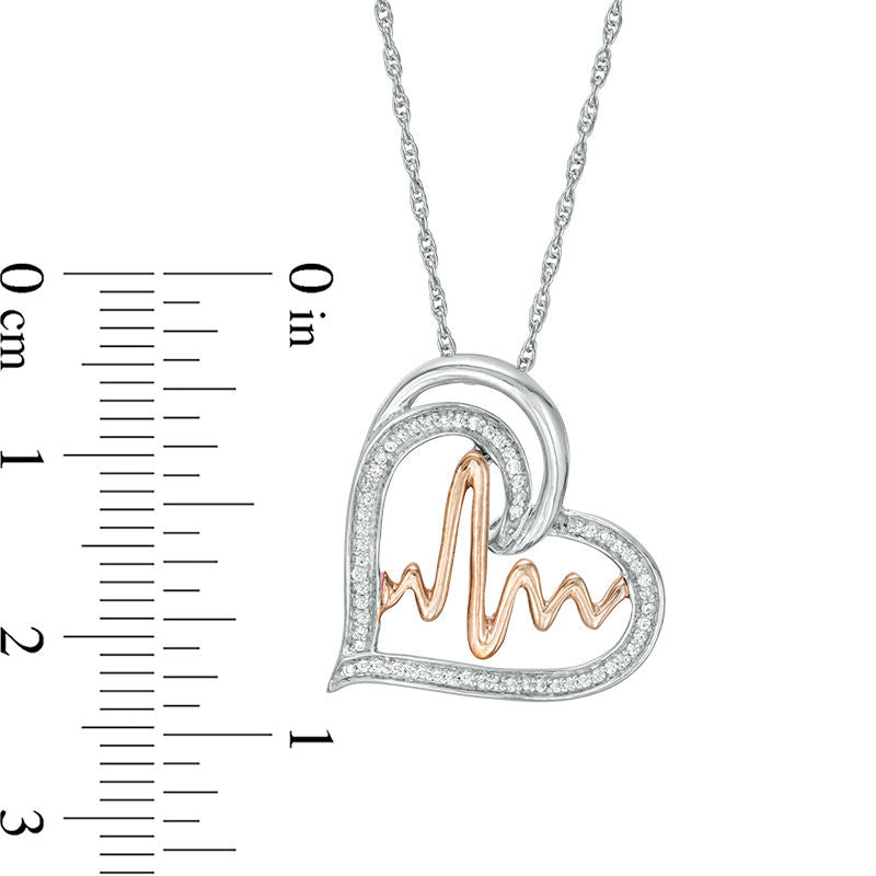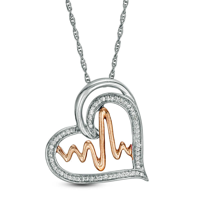 0.13 CT. T.W. Natural Diamond Heartbeat in Tilted Heart Pendant in Sterling Silver with 14K Rose Gold Plate
