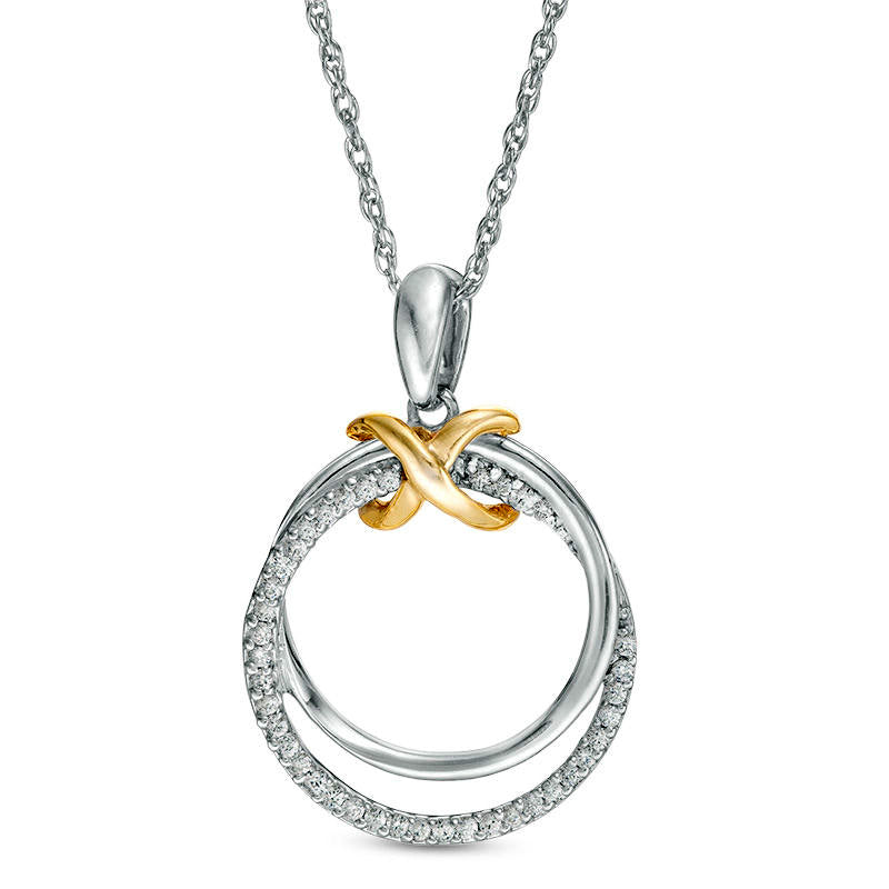 0.13 CT. T.W. Natural Diamond Infinity Knot Interlocking Circles Pendant in Sterling Silver and 10K Yellow Gold