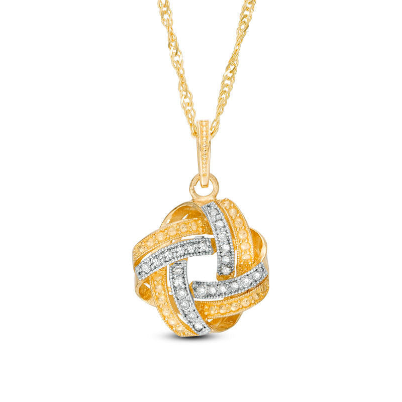 0.13 CT. T.W. Natural Diamond Infinity Love Knot Pendant in 10K Yellow Gold