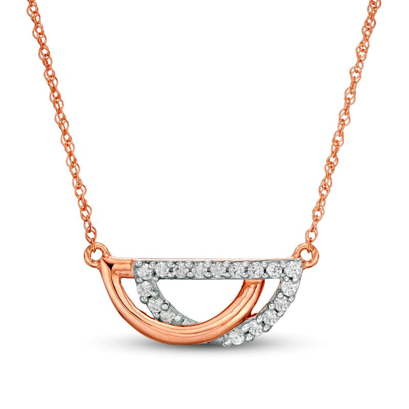 0.13 CT. T.W. Natural Diamond Interlocking Half Circles Necklace in 10K Rose Gold