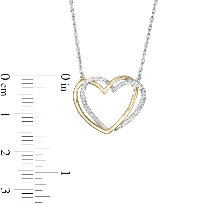 0.13 CT. T.W. Natural Diamond Interlocking Hearts Necklace in Sterling Silver and 10K Yellow Gold