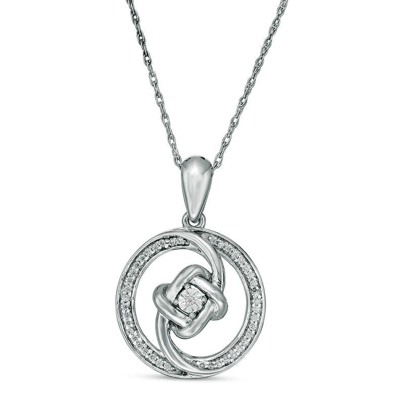 0.13 CT. T.W. Natural Diamond Love Knot Swirl Circle Pendant in Sterling Silver