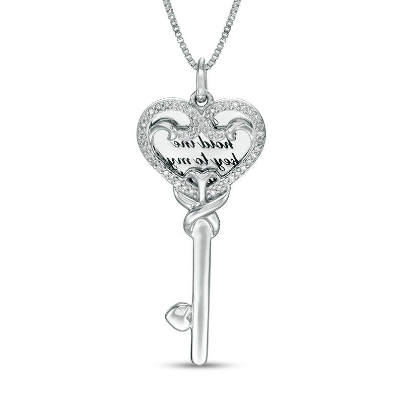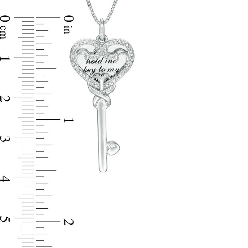 0.13 CT. T.W. Natural Diamond Love Message Disc and Heart-Top Key Pendant in Sterling Silver