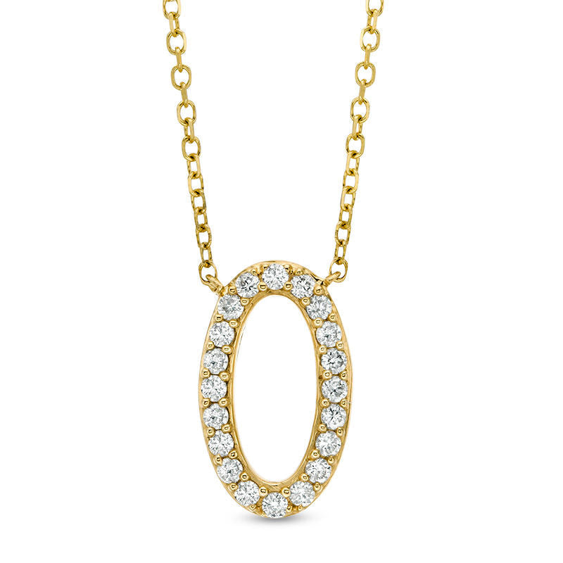 0.13 CT. T.W. Natural Diamond Mini Oval Necklace in 10K Yellow Gold