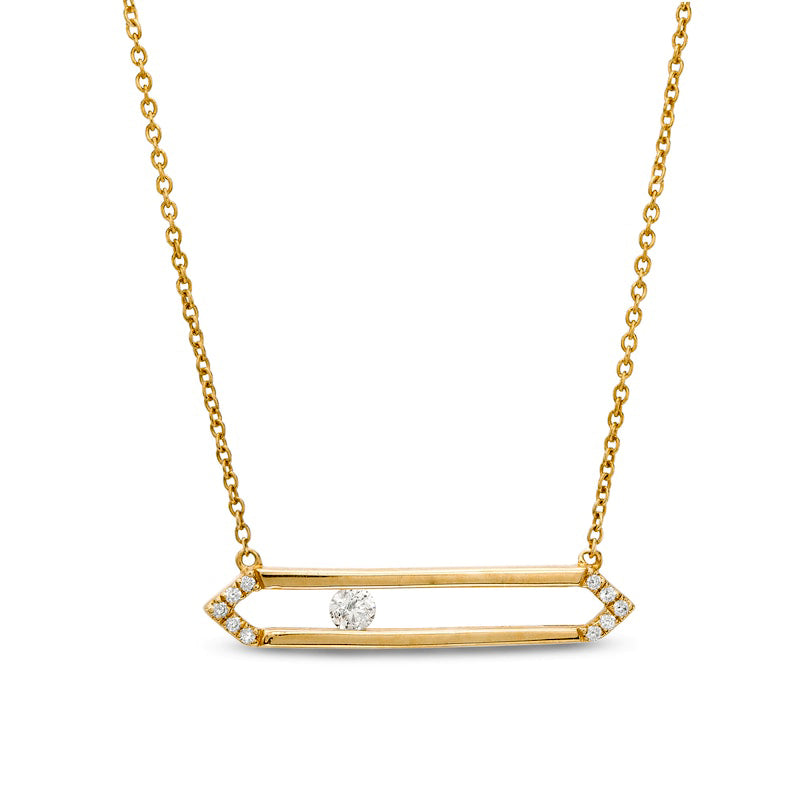 0.13 CT. T.W. Natural Diamond Open Bar Necklace in 14K Gold