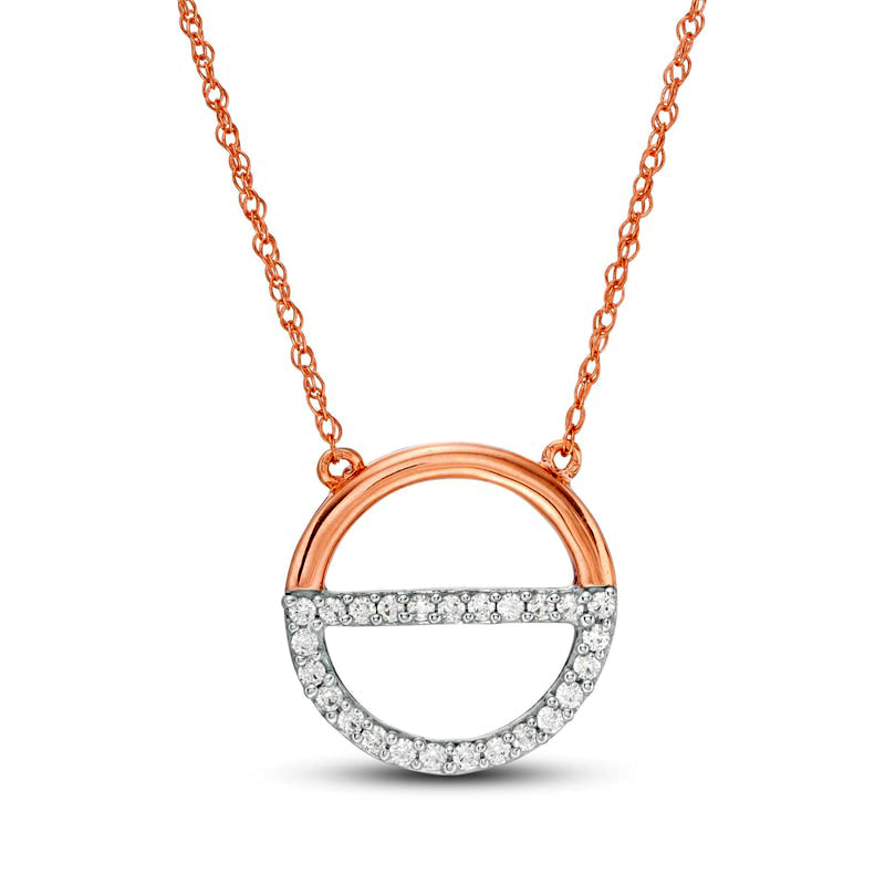 0.13 CT. T.W. Natural Diamond Open Divided Circle Necklace in 10K Rose Gold