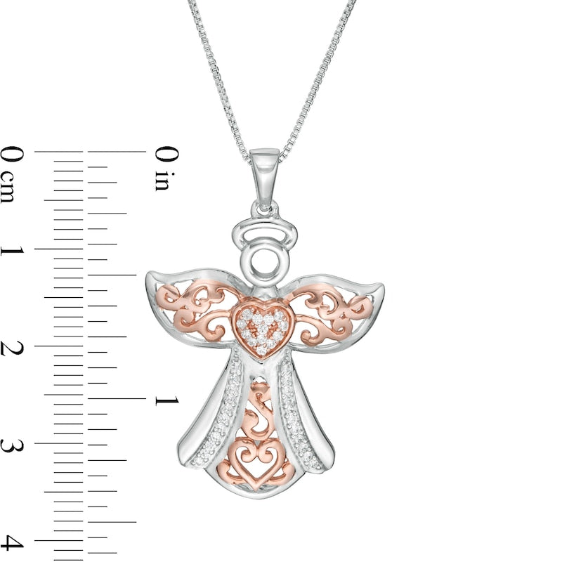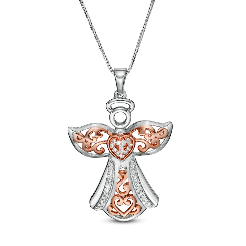 0.13 CT. T.W. Natural Diamond Ornate Angel Pendant in Sterling Silver and 14K Rose Gold Plate