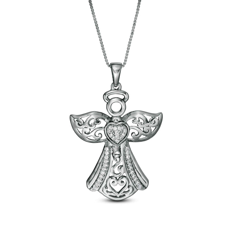 0.13 CT. T.W. Natural Diamond Ornate Angel Pendant in Sterling Silver