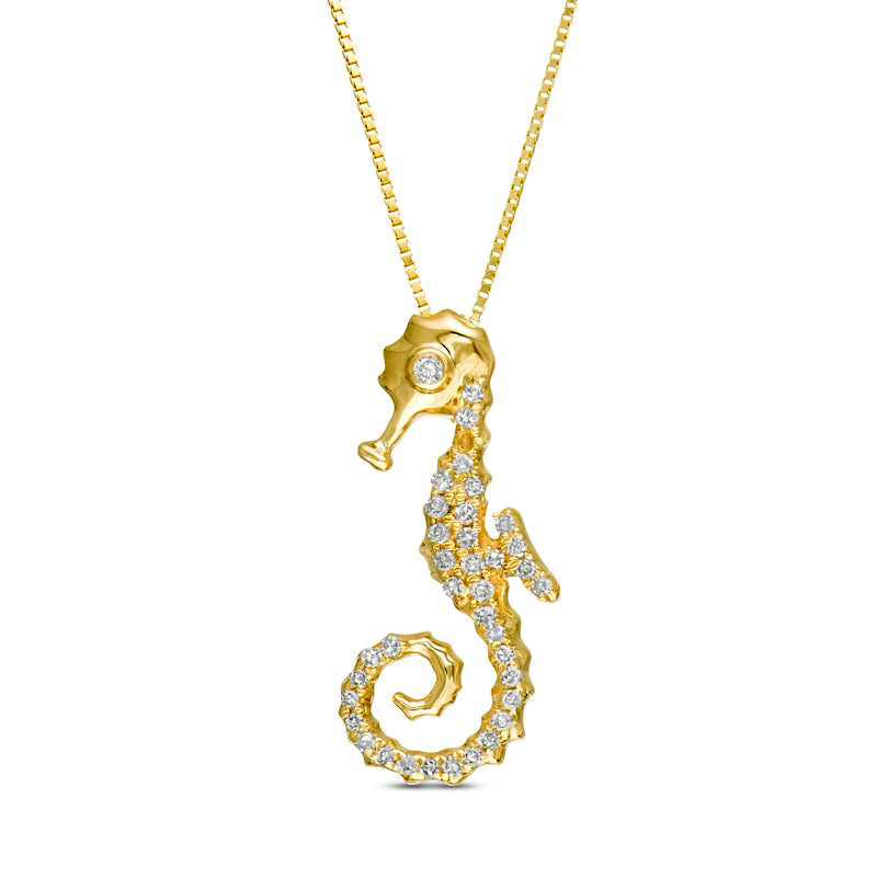 0.13 CT. T.W. Natural Diamond Seahorse Pendant in 10K Yellow Gold