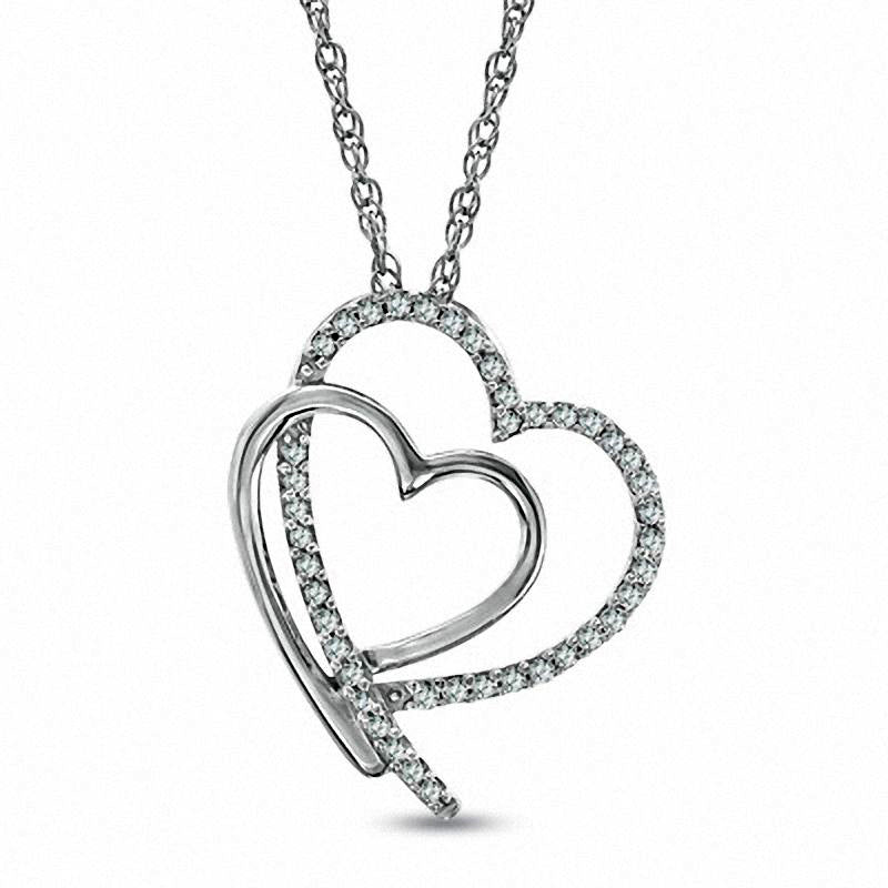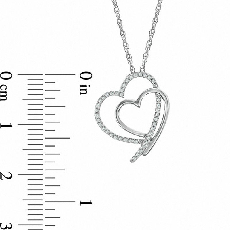 0.13 CT. T.W. Natural Diamond Shadowed Tilted Heart Pendant in Sterling Silver