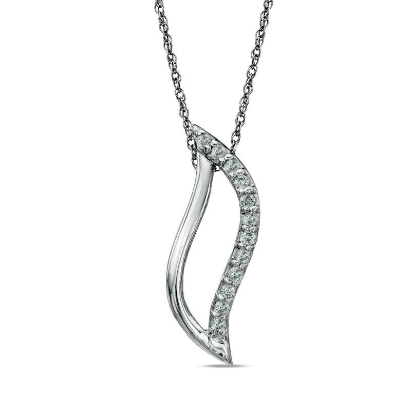 0.13 CT. T.W. Natural Diamond Single Flame Pendant in 10K White Gold
