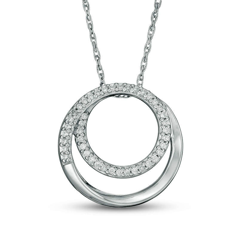 0.13 CT. T.W. Natural Diamond Spiral Open Circle Pendant in Sterling Silver