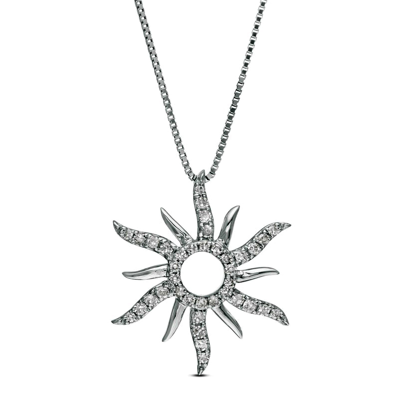 0.13 CT. T.W. Natural Diamond Sun Pendant in 10K White Gold