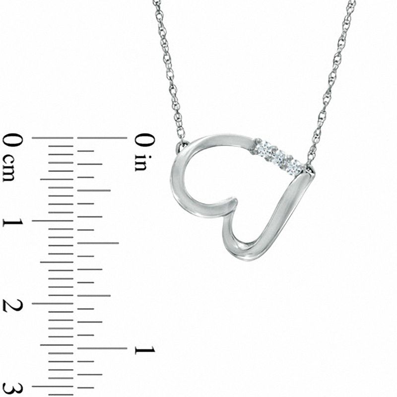 0.13 CT. T.W. Natural Diamond Three Stone Sideways Heart Necklace in Sterling Silver