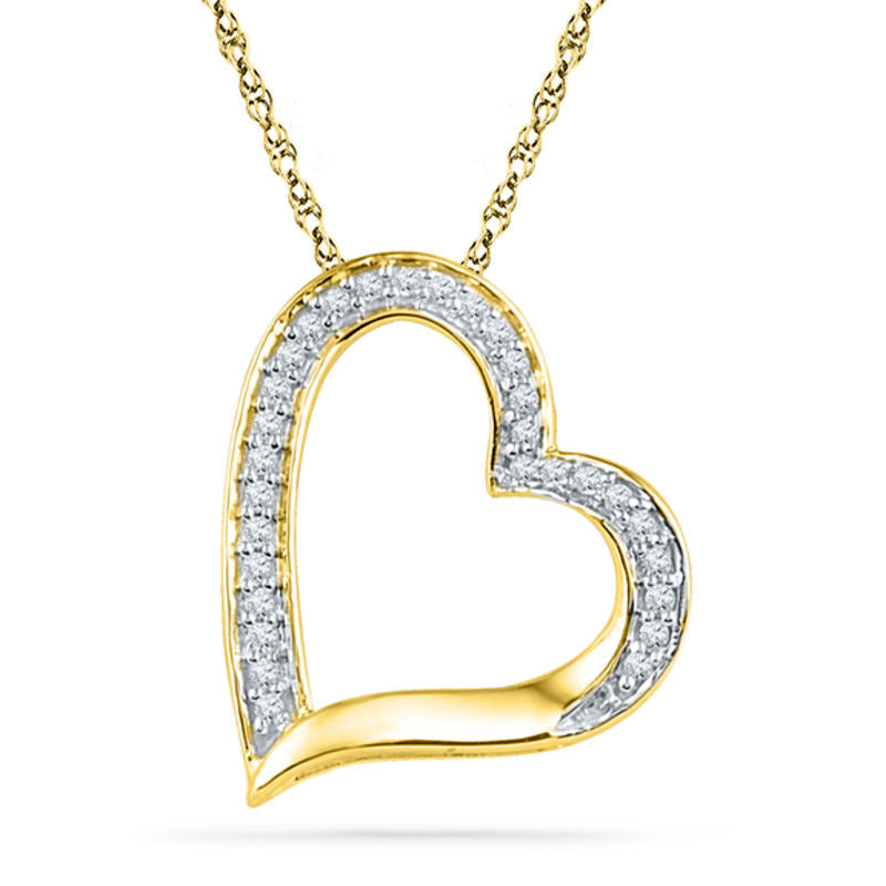 0.13 CT. T.W. Natural Diamond Tilted Heart Pendant in 10K Yellow Gold