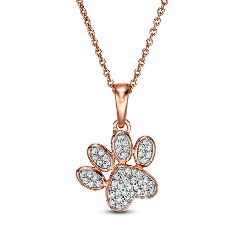 0.13 CT. T.W. Natural Diamond Tilted Paw Print Pendant in 10K Rose Gold
