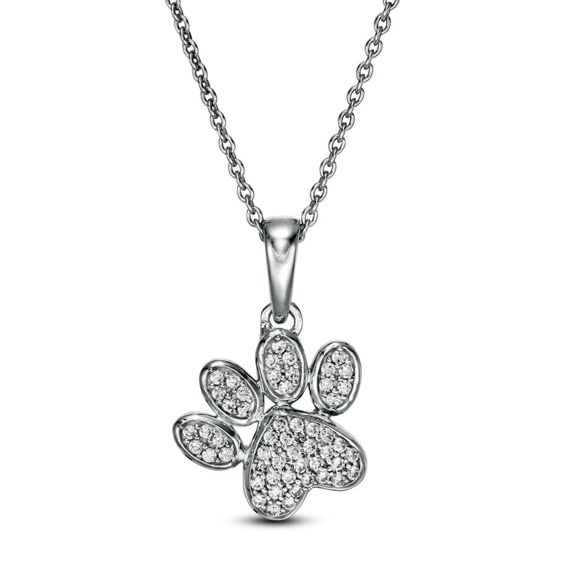 0.13 CT. T.W. Natural Diamond Tilted Paw Print Pendant in 10K White Gold