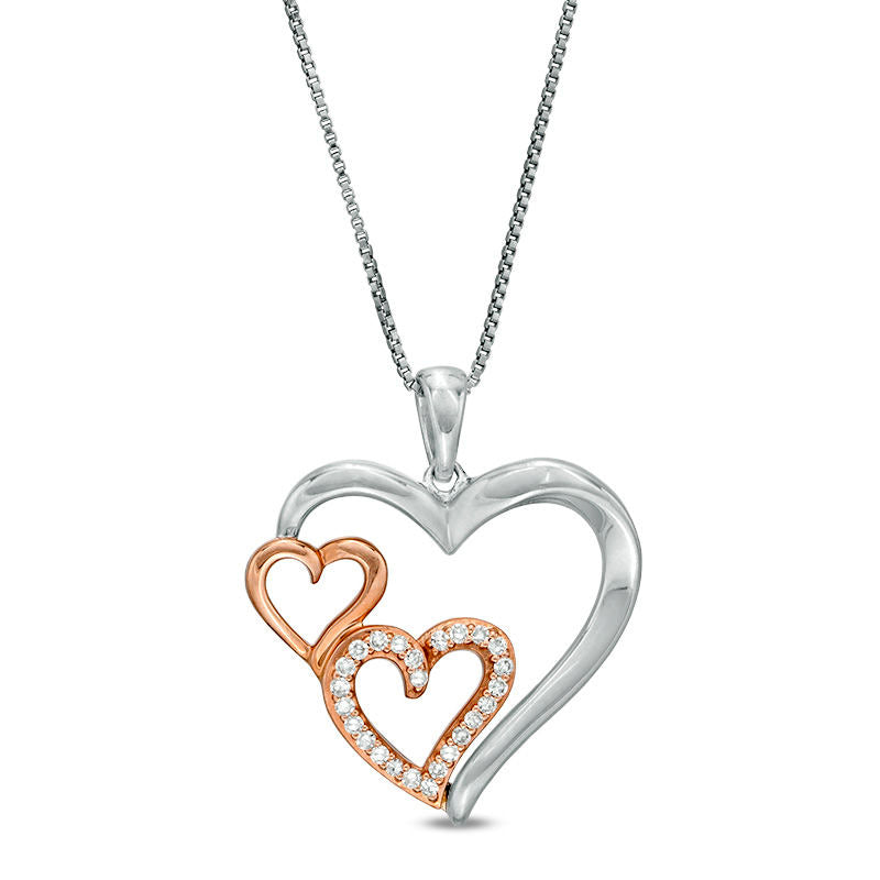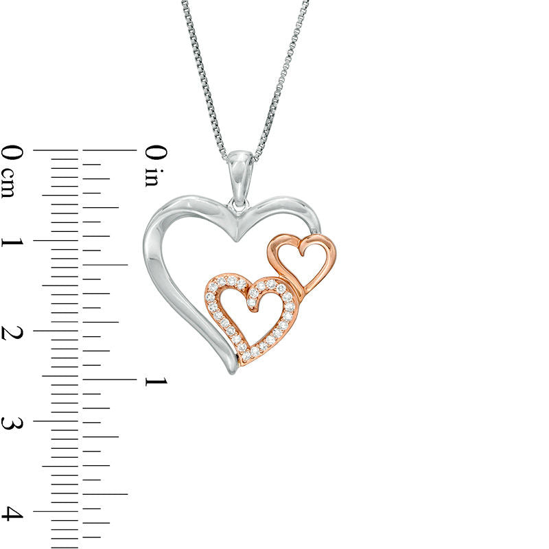 0.13 CT. T.W. Natural Diamond Triple Heart Pendant in Sterling Silver and 10K Rose Gold