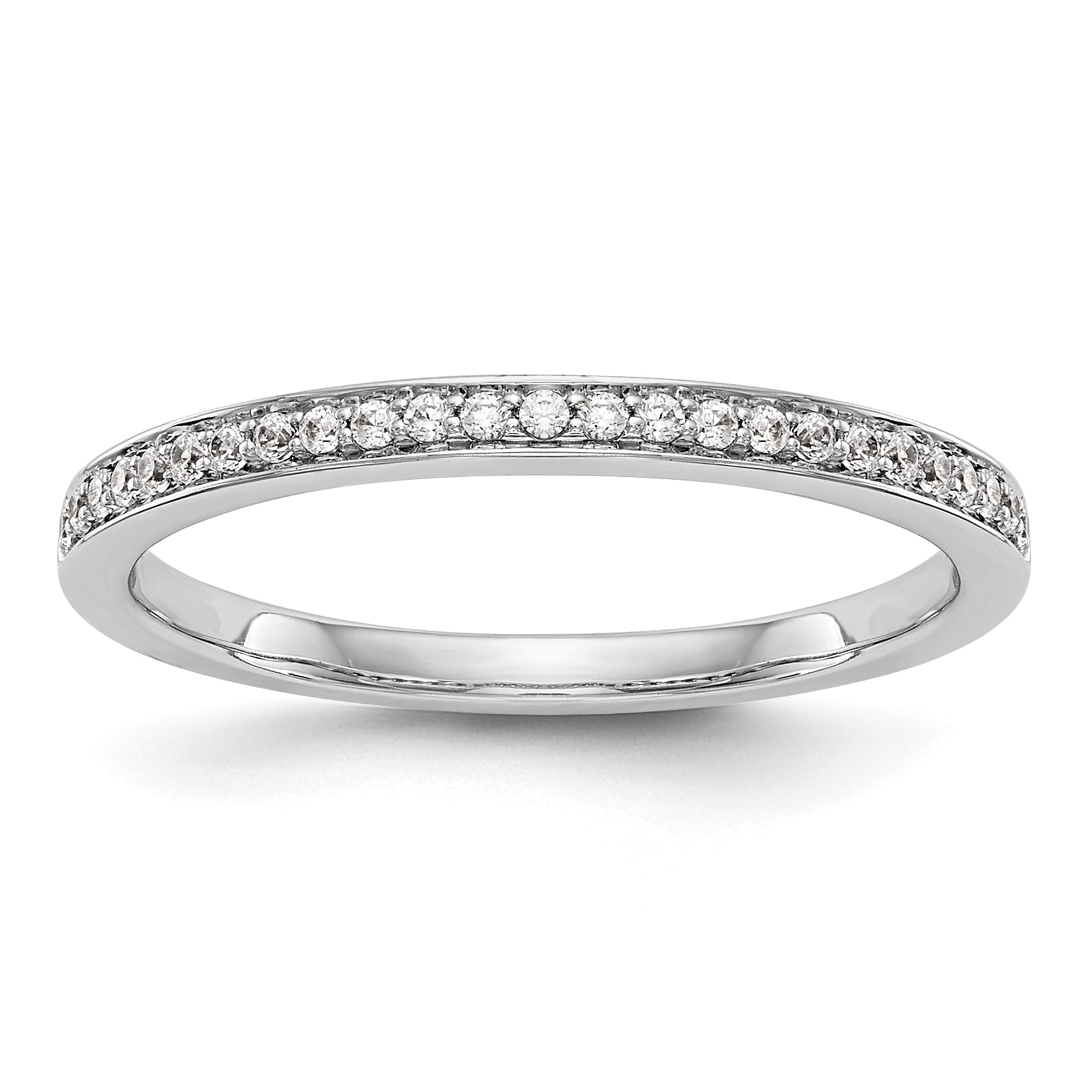 Looking for a stunning wedding band ring that will last a lifetime? Look no further than this gorgeous REAL 14K white gold ring, featuring a beautiful 0.13ct AAA quality cubic zirconia stone. Crafted with care by our experienced jewelers, this ring is stamped with 14K as a symbol of authenticity and quality. And if you prefer natural diamonds, just contact us for pricing – we're happy to help! Perfect for weddings, engagements, birthdays, and more, this ring is a lovely way to show your love and commitment. And with our hassle-free, 30-day money-back guarantee, you can shop with confidence. So why wait? Order your 14K white gold wedding band ring today!