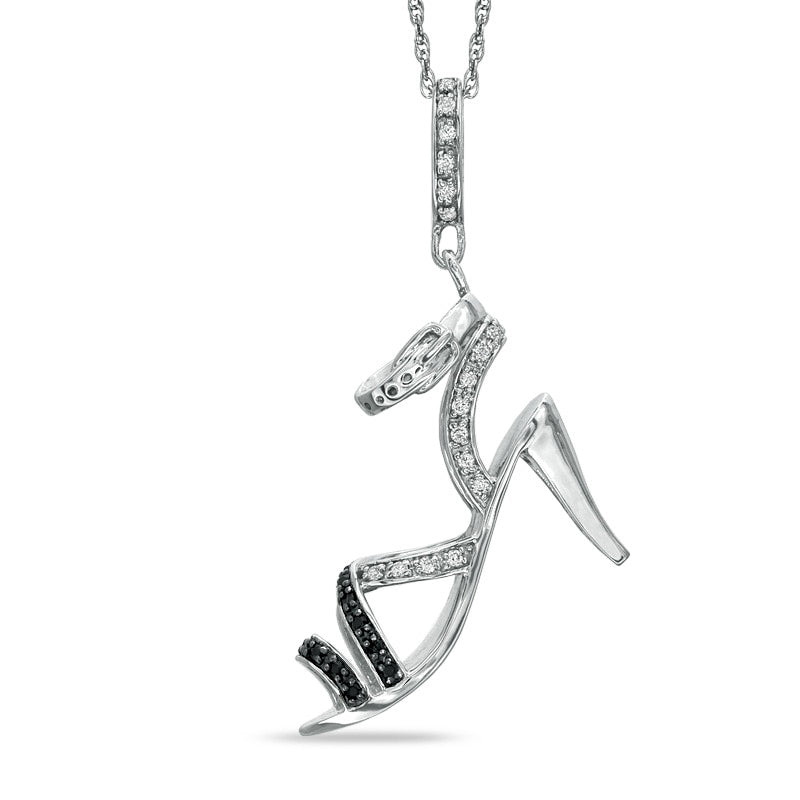 0.14 CT. T.W. Enhanced Black and White Natural Diamond Stiletto Sandal Pendant in Sterling Silver