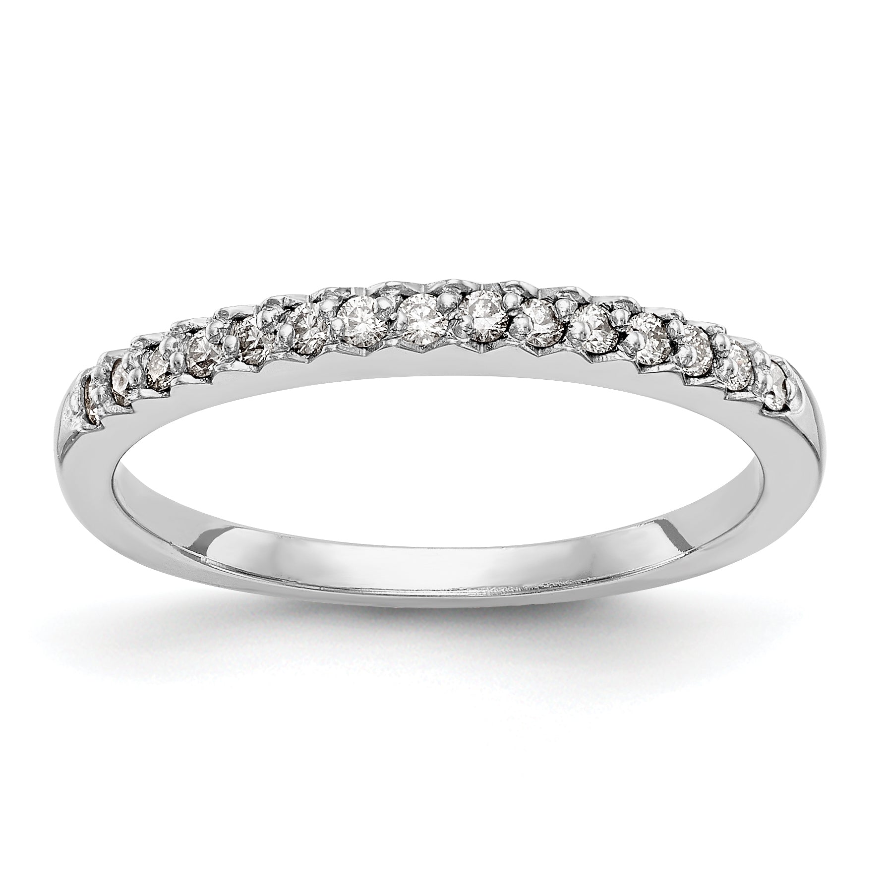 This is a beautiful wedding band ring made of real 14K white gold. You can choose to have it made in yellow or rose gold too, without extra cost. The ring has a high-quality AAA cubic zirconia stone in it, set by hand by our experienced jewelers. If you prefer diamonds, we can arrange that too. This elegant ring makes a perfect gift for weddings, anniversaries, birthdays, or any special occasion. It's durable and safe to wear every day, and comes with a 30-day money-back guarantee. The ring is available in sizes 6 to 8 and comes with a free gift box.