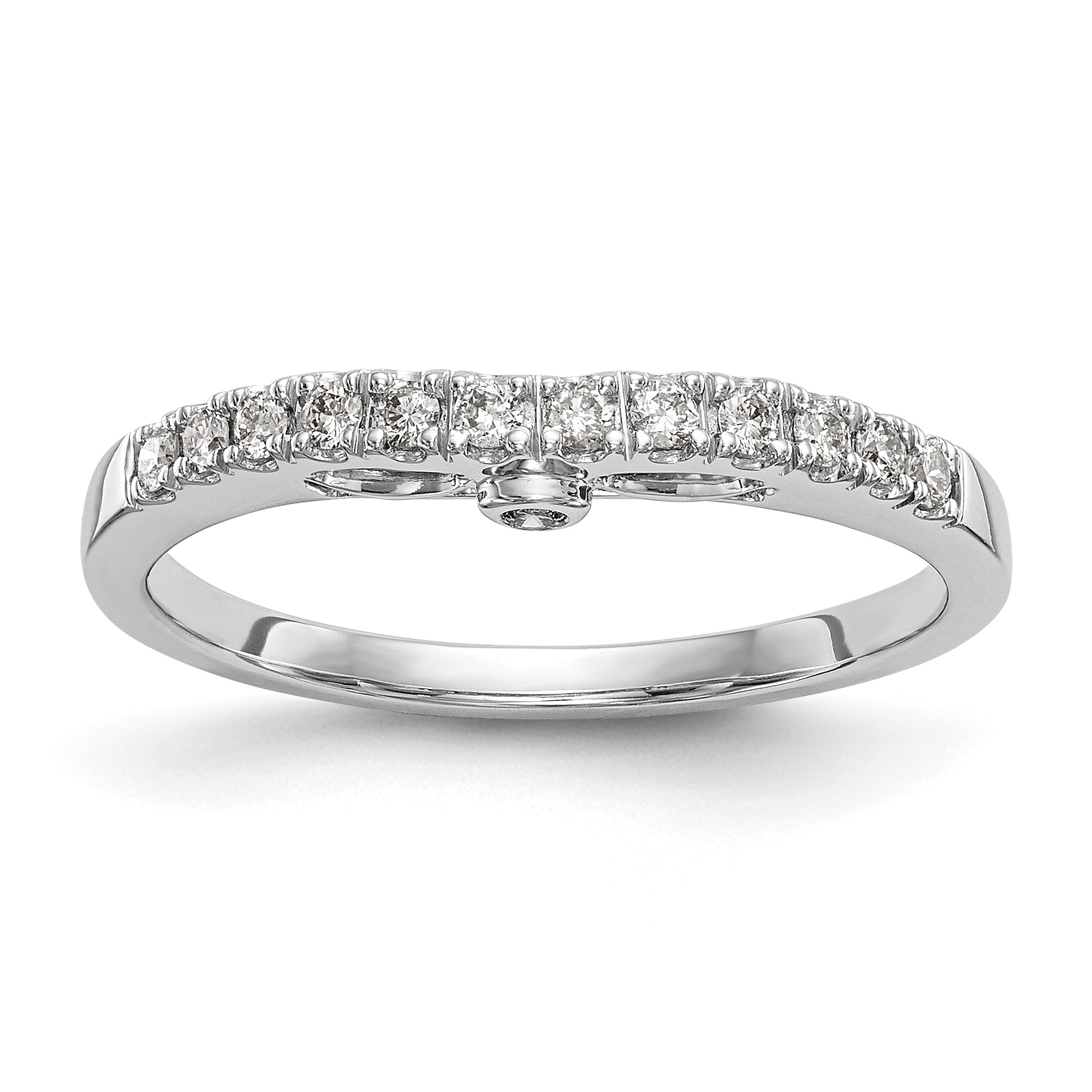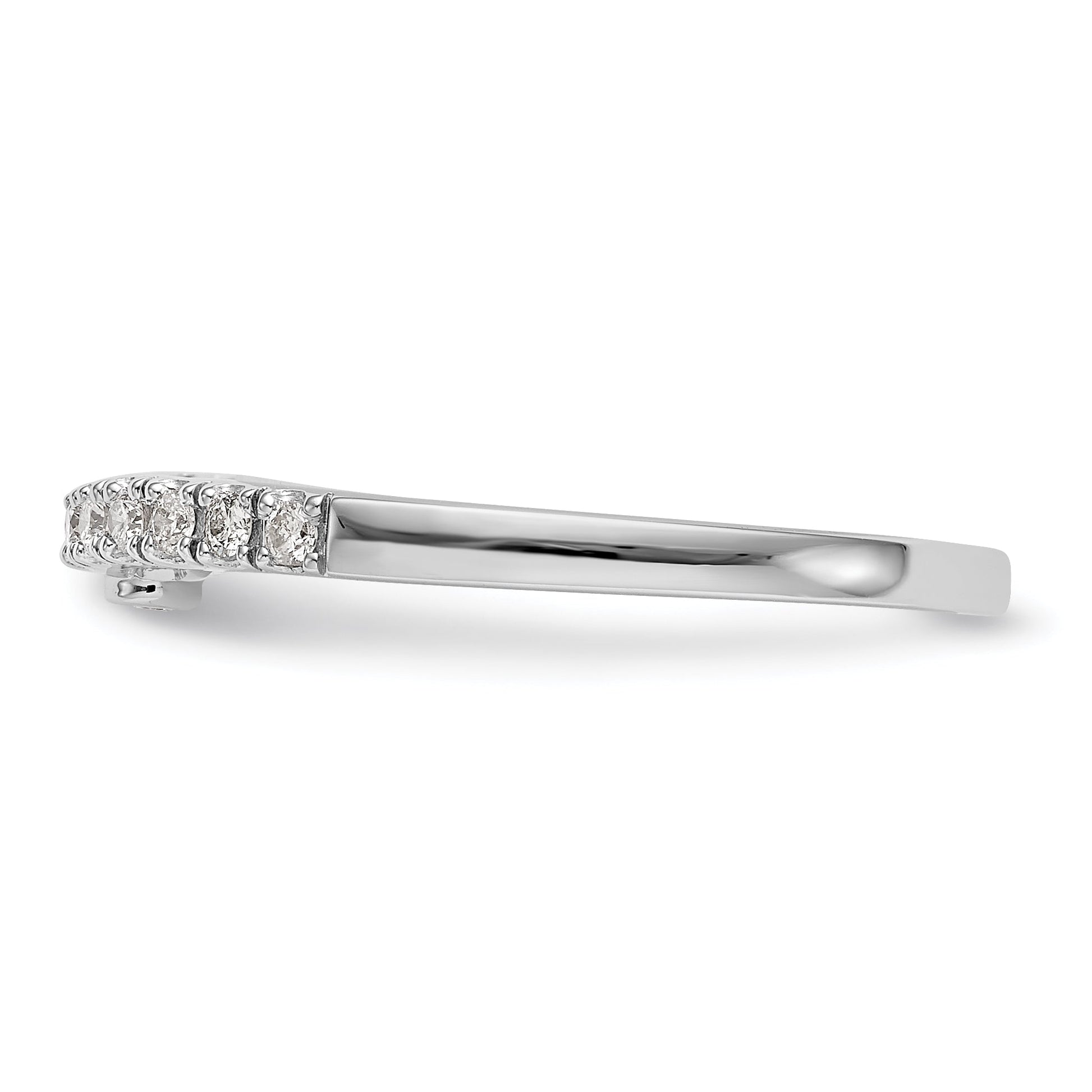 This stunning ring is complete with six round CZs measuring 1.5mm each, one round 1.5mm CZ and six round 1.4mm CZs. The band tapers from 2.2 to 1.5mm and is plated with rhodium for added durability. The ring is complete with all stones included and is sizeable up to a US size 8, with 0.25 increment adjustments available. Invest in the best for your wedding day with our gorgeous 0.16ct. CZ Solid Real 14k White Gold Wedding Band Ring.