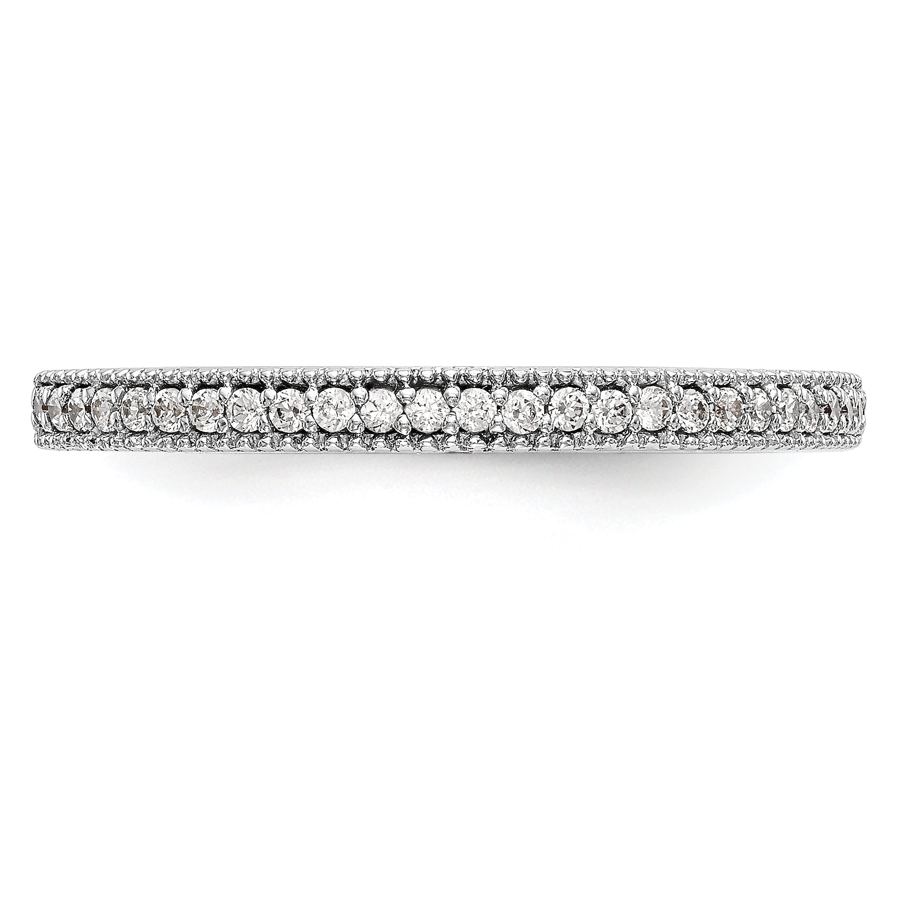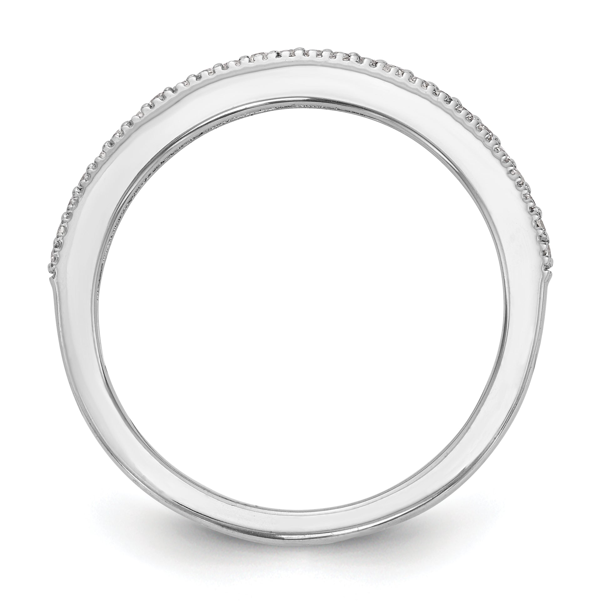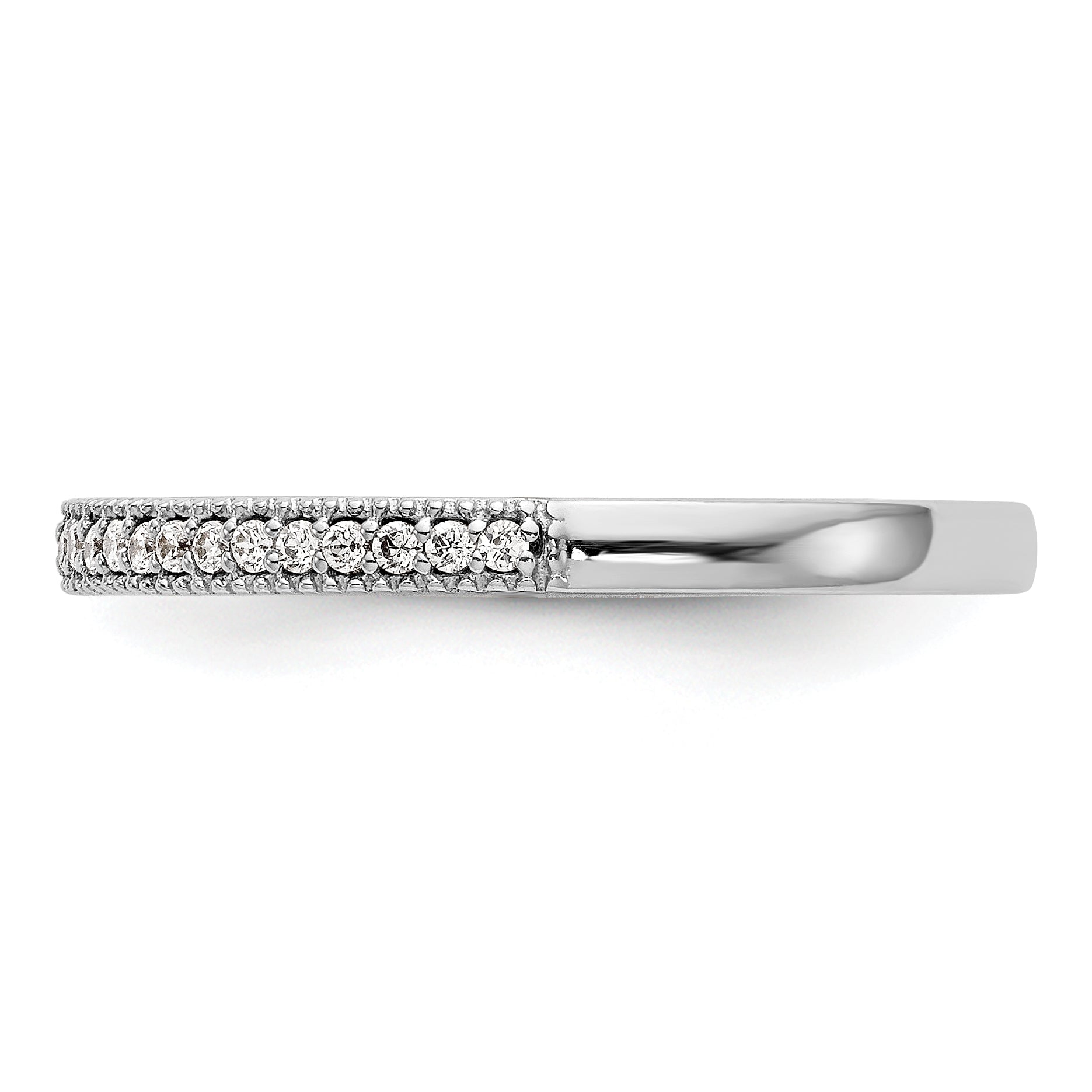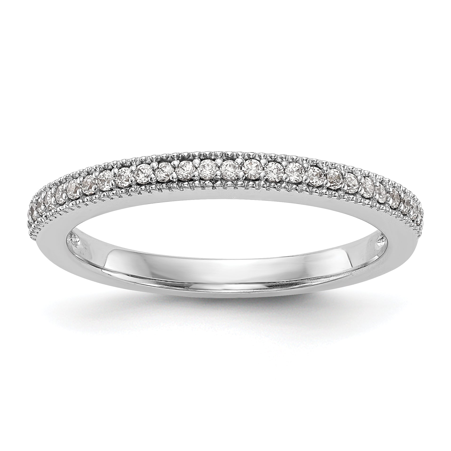 This ring has a band width of 2.1 to 1.9mm (tapered) and can be sized between 6 and 8 with 0.25 sizing adjustment increments. The ring is fully complete with all stones included and has an open back. The manufacturing process involves casting to ensure every detail is perfect. The materials used are of the highest quality, with the primary color being white. The ring type is a wedding band, and the synthetic stone creation method guarantees a long-lasting piece of jewelry.
