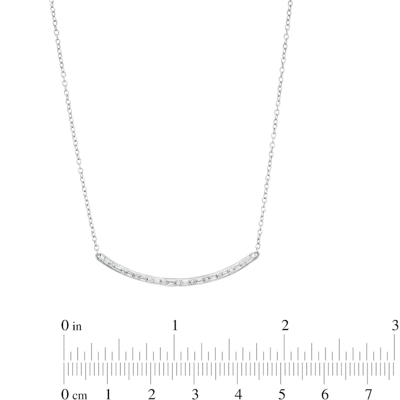 0.17 CT. T.W. Baguette and Round Natural Diamond Curved Bar Necklace in 10K White Gold