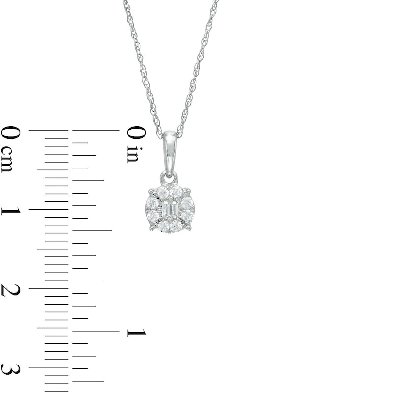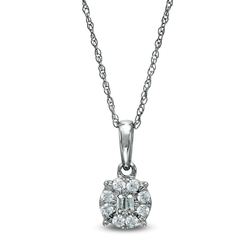 0.17 CT. T.W. Baguette and Round Natural Diamond Frame Pendant in 10K White Gold
