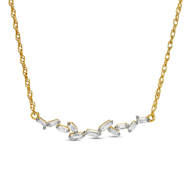 0.17 CT. T.W. Baguette Natural Diamond Scatter Horizontal Bar Necklace in 10K Yellow Gold