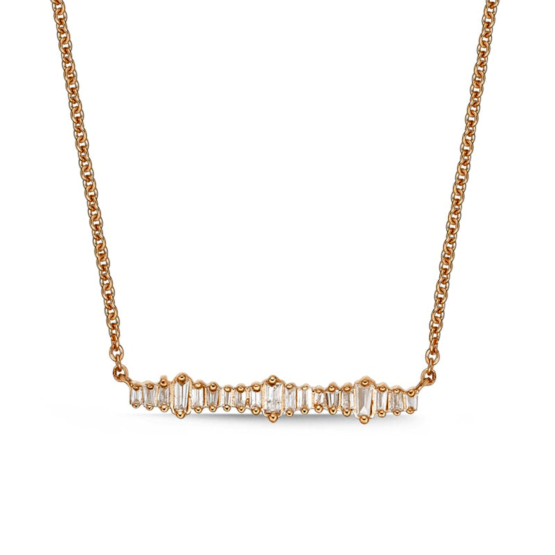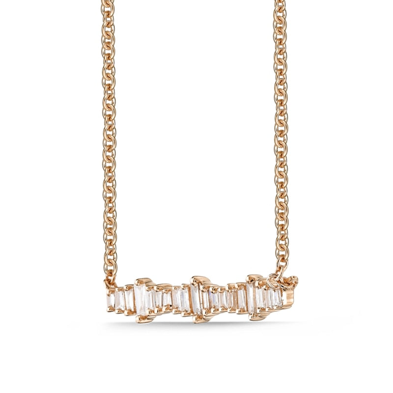 0.17 CT. T.W. Baguette Natural Diamond Sideways Bar Necklace in 10K Rose Gold