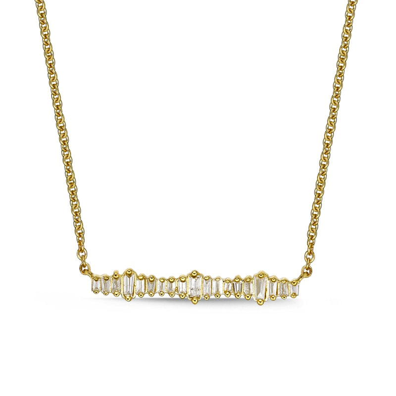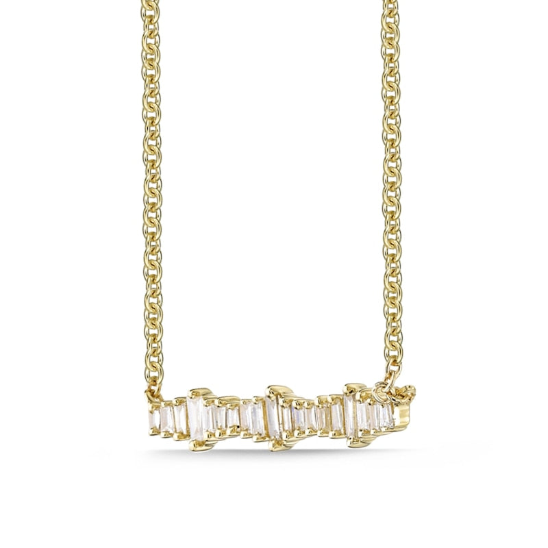 0.17 CT. T.W. Baguette Natural Diamond Sideways Bar Necklace in 10K Yellow Gold