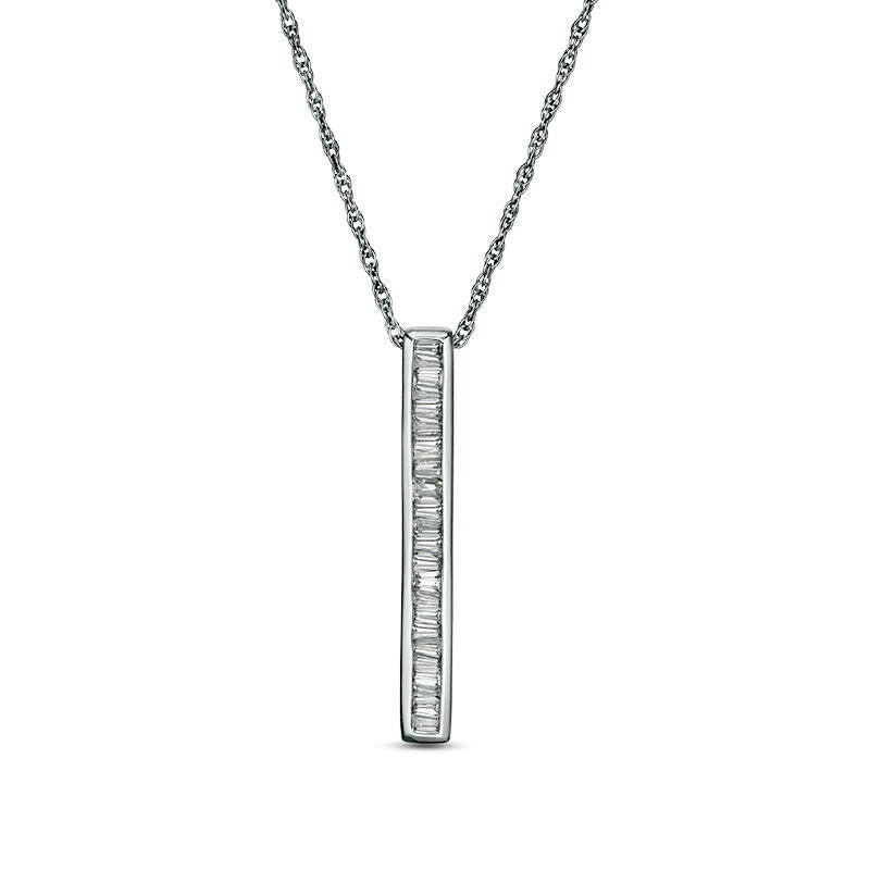 0.17 CT. T.W. Baguette Natural Diamond Vertical Bar Pendant in 10K White Gold