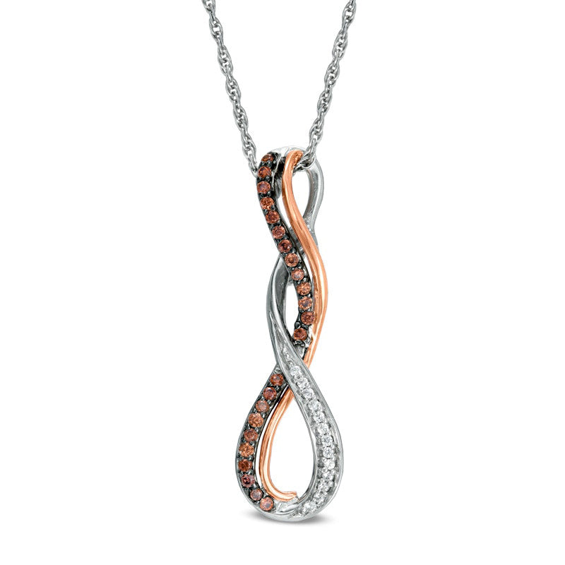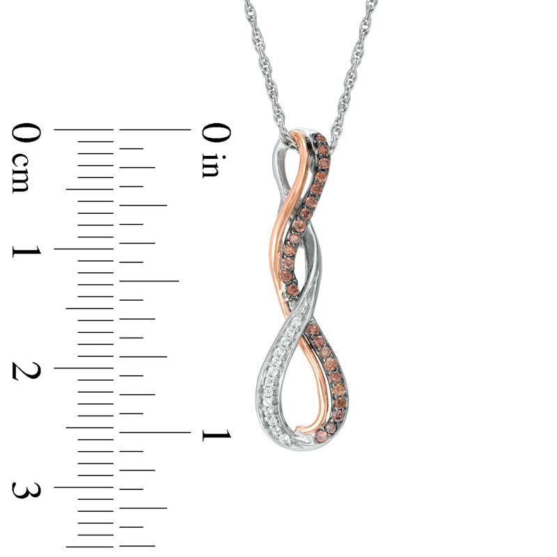 0.17 CT. T.W. Champagne and White Natural Diamond Cascading Infinity Pendant in Sterling Silver and 10K Rose Gold