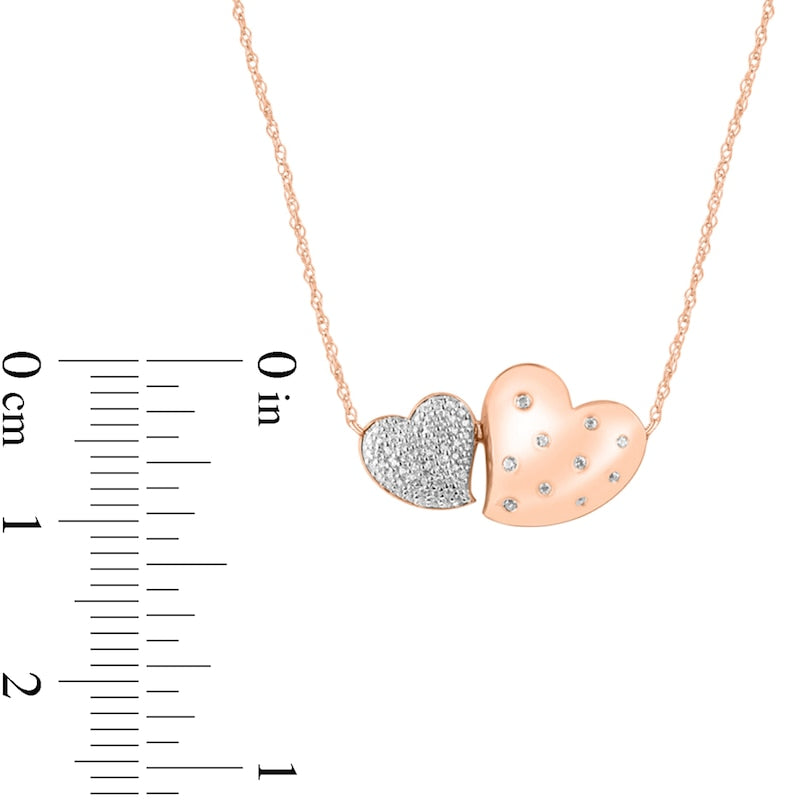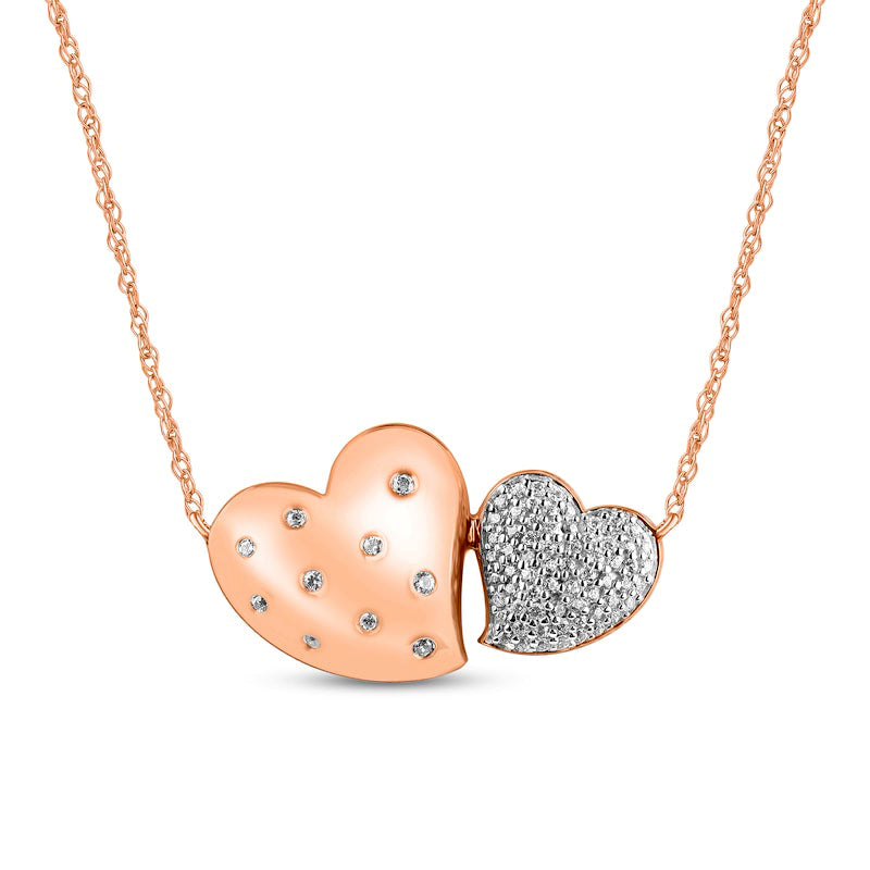 0.17 CT. T.W. Composite Natural Diamond Double Heart Necklace in 10K Rose Gold