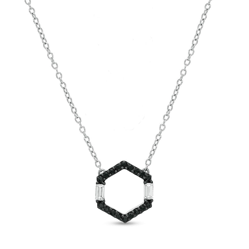 0.17 CT. T.W. Enhanced Black and White Natural Diamond Hexagon Necklace in Sterling Silver