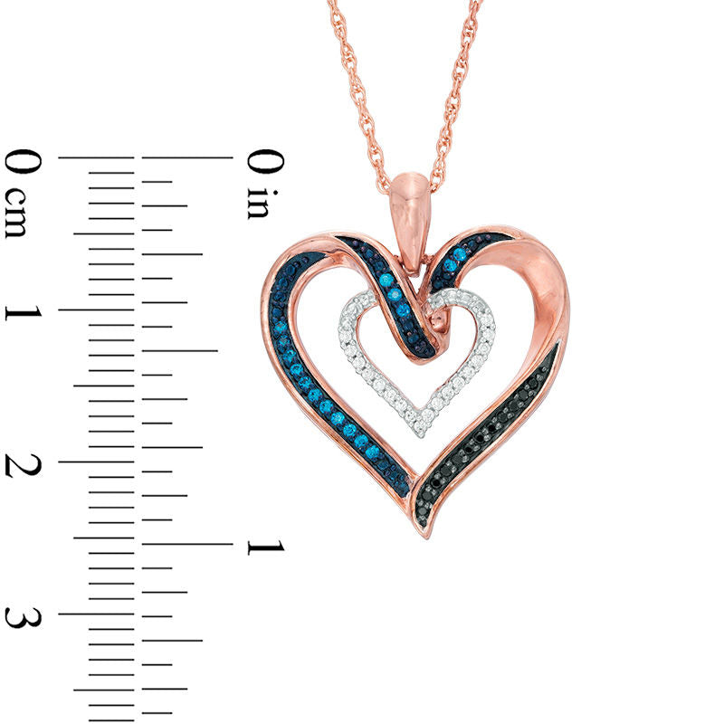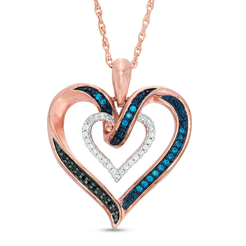 0.17 CT. T.W. Enhanced Blue, Black and White Natural Diamond Heart Pendant in Sterling Silver with 14K Rose Gold Plate