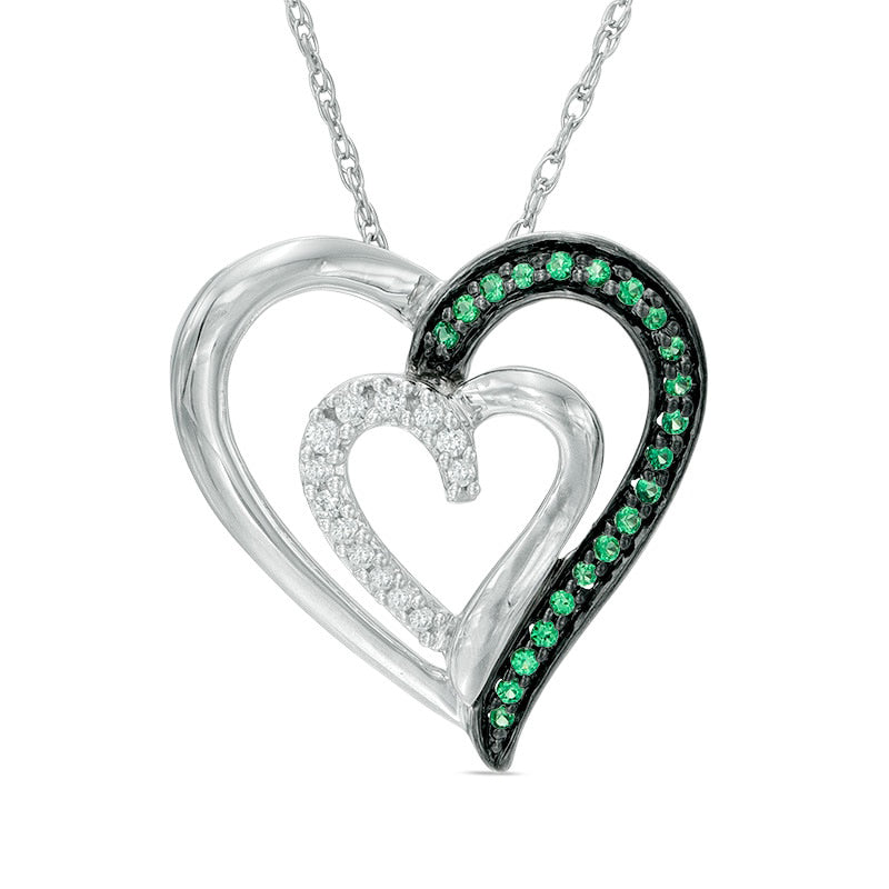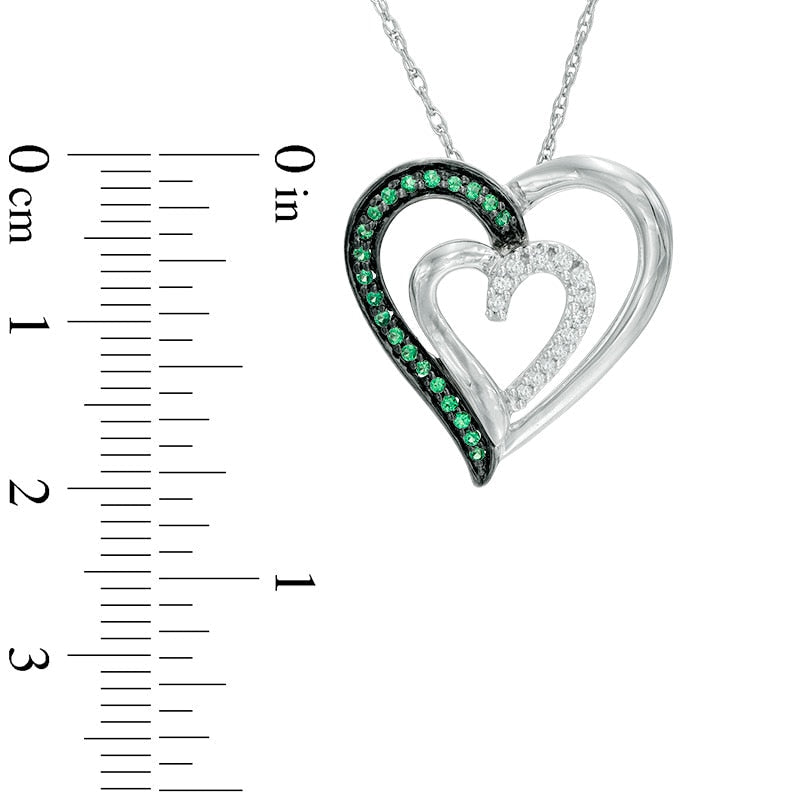 0.17 CT. T.W. Enhanced Green and White Natural Diamond Tilted Double Heart Pendant in Sterling Silver