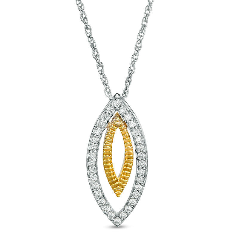 0.17 CT. T.W. Natural Diamond and Textured Double Marquise Pendant in Sterling Silver and 10K Yellow Gold