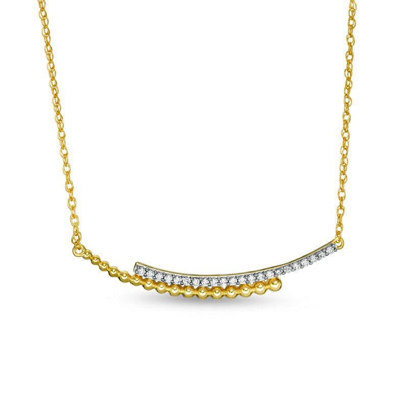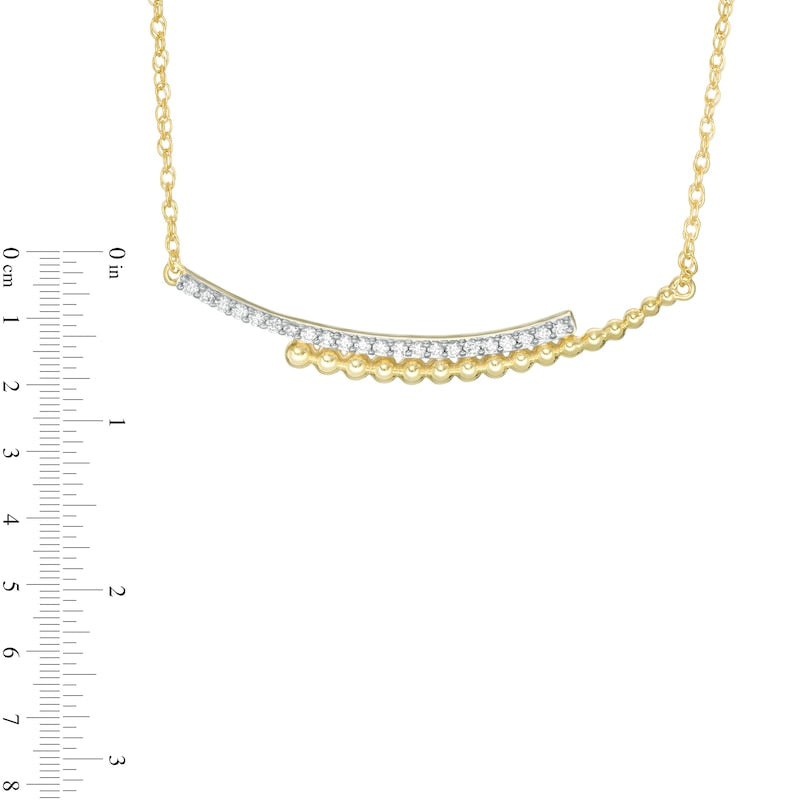 0.17 CT. T.W. Natural Diamond Curved Beaded Ribbon Bypass Necklace in 10K Yellow Gold
