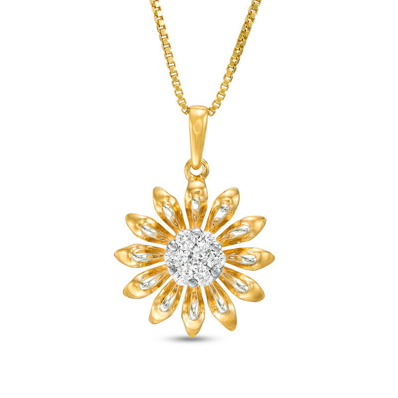 0.17 CT. T.W. Natural Diamond Daisy Pendant in Sterling Silver with 18K Gold Plate