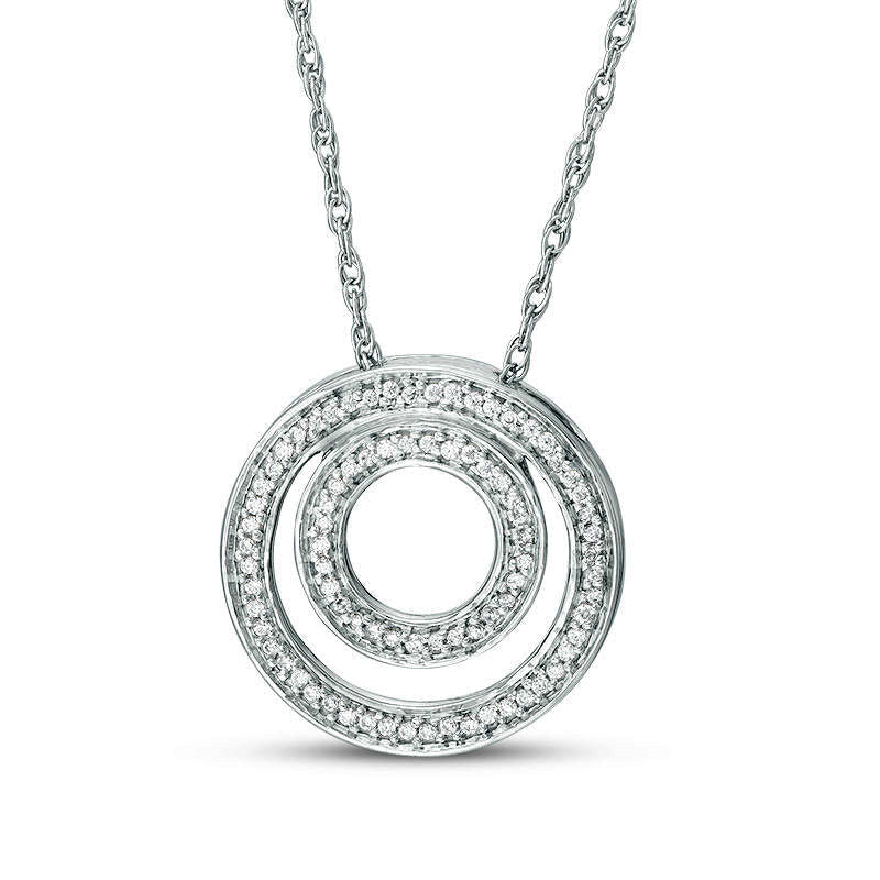 0.17 CT. T.W. Natural Diamond Double Circle Pendant in Sterling Silver